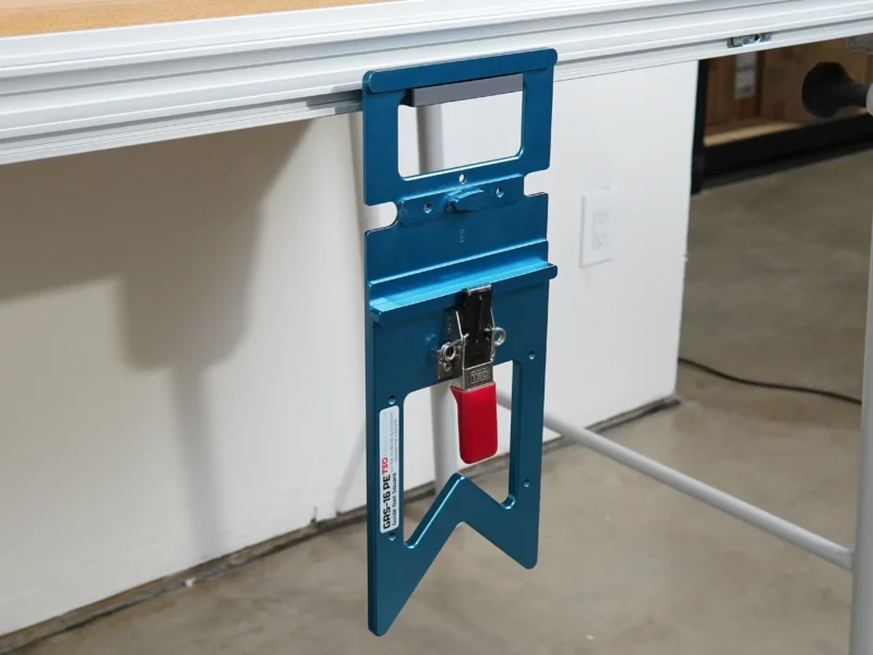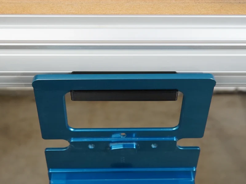 Guide rail square holder for MFT/3 table. Keep your shop organized and your most important tools by your side with our rail square holder allowing you to store your rail square off your work table on the side of your MFT 3 table.