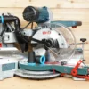 • Connect your shop vac & dust extractor hose to your Bosch glide 10″ compound miter saw