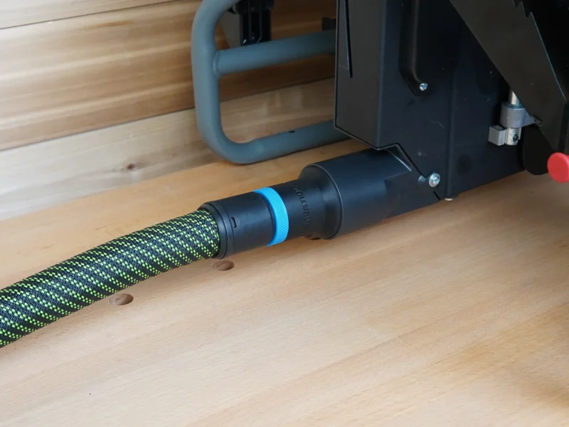 - Connect your shop vac hose to your Craftsman table saw