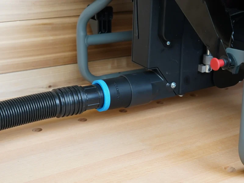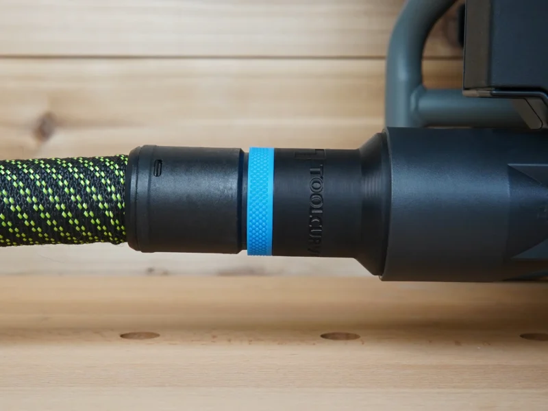 ToolCurve’s hose adapter for Craftsman table saw’s dust port. This adapter allows you to use your dust extractor hose with your Craftsman table saw’s rear dust port.