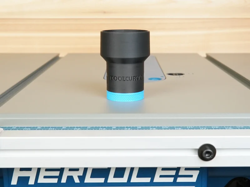 ToolCurve’s hose adapter for Hercules 10″ table saw’s rear dust port. This adapter allows you to use your dust extractor hose with your Hercules 10″ table saw’s rear dust port.