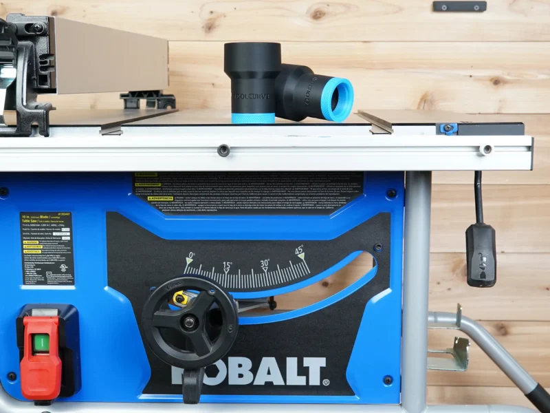 • Connect your shop vac hose to your Kobalt table saw