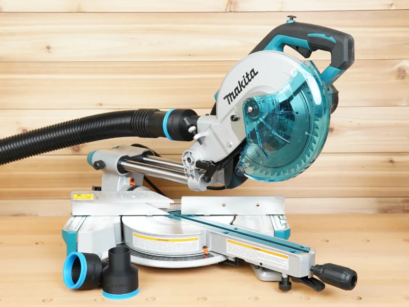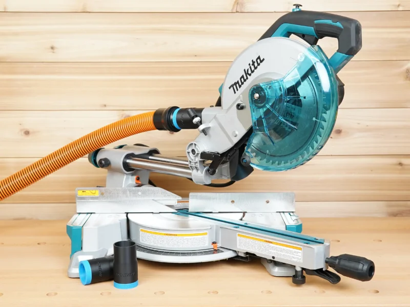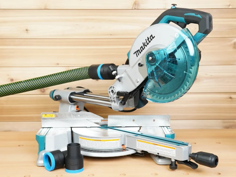 - Connect your shop vac & dust extractor hose to your Makita LS Series Miter Saws (8-1/2″, 10″, and 12″)