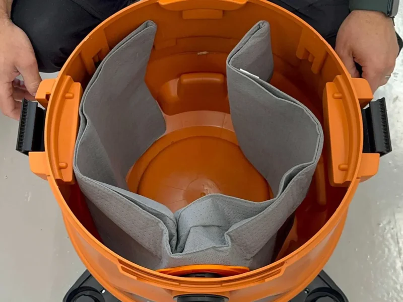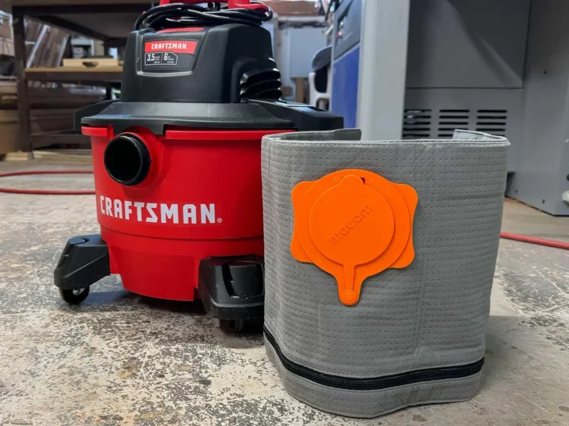 These reusable vacuum bags from Macam are compatible with Ridgid and Craftsman 12-16 Gallons dust extractors, keeping your workspace clean efficiently. Made of durable polyester material that can withstand hundreds of uses, these bags capture fine dust and debris without replacement. The bag’s unique design seals in particles to prevent leakage, protecting indoor air quality during vacuuming jobs. An elastic top opening fits securely over the dust extractor’s inlet tube. Users can simply empty the bag after use and reuse, saving money over disposable bags while reducing environmental waste. Ideal for woodworking, construction, or renovation tasks, this bag is a dust control essential that lets you vacuum without interruption. Effectively captures larger debris to extend the life of the main filter. Not suitable for concrete or decorator dust. For dust not hazardous to health.