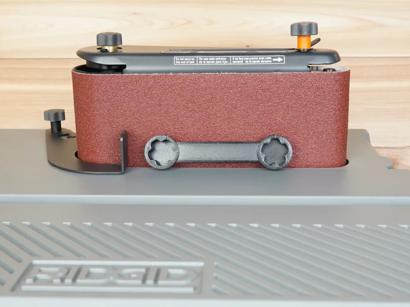 This custom wrench is designed to fit the adjustment knobs on the Ridgid oscillating sander, giving you extra leverage to easily loosen or tighten them when adjusting belt tension. These sanders are known for the knobs tightening themselves during use, often making them difficult to move by hand. Instead of reaching for pliers or struggling to break them loose, this wrench gives you a simple and reliable way to make adjustments.