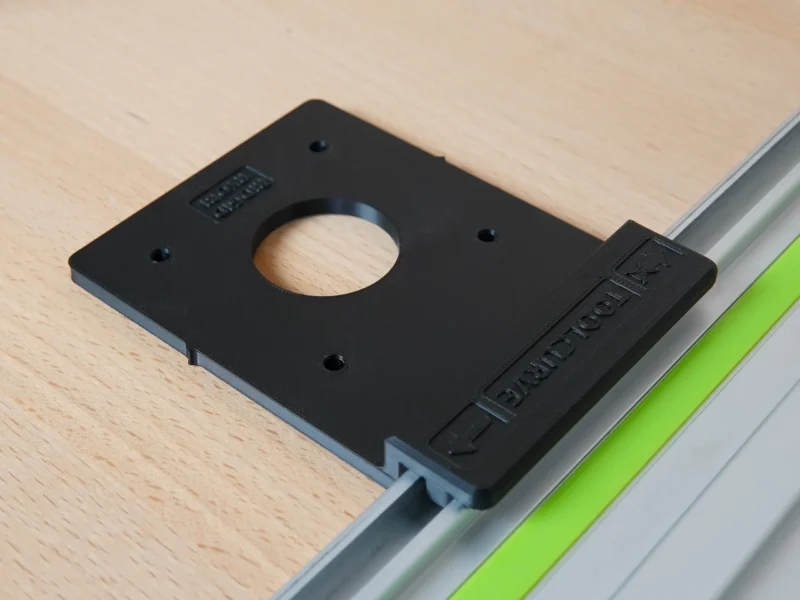 ToolCurve router adapters feature a convenient drop-in design, allowing them to easily slide into the T-track accessory slot found on all standard track saw guide rails. This ensures compatibility across a wide range of track saw brands and provides a secure, reliable fit for precise routing.