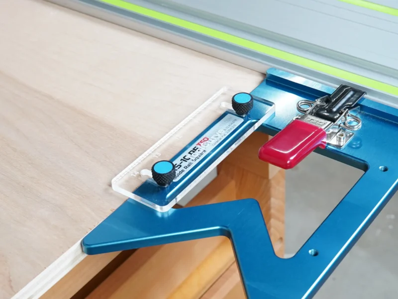 Anti-tip support tab for TSO guide rail square Guide rail squares are great accessories for any track saw user, allowing you to quickly and easily align your rail to your workpiece at a perfect 90-degree angle. The main issue is the weight of the aluminum rail square can cause it to dip and sag while in use. Our guide rail support square provides a quick and useful tab to support your rail square keeping it secure and in place.